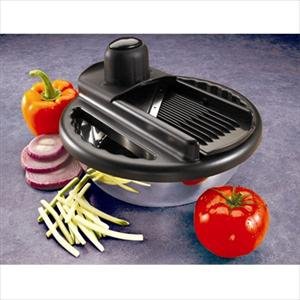 Makes slicing easy, clean and quick.1-Qt Stainless Steel Bowl, lid.4 interchangeable stainless steel blades.thick & thin, 2 julienne blades.Secure cover, safety food holder.Dishwasher Safe, Ltd Lifetime Warranty. Read more...