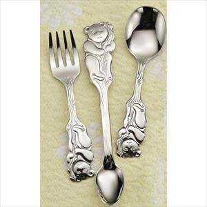 Fine 18/10 Stainless Steel Flatware.Baby Fork, Baby Spoon, Feeder Spoon.Features a friendly little bear cub.Full handle is easy for a child to hold.Gift box, Hand washing recommended. Read more...