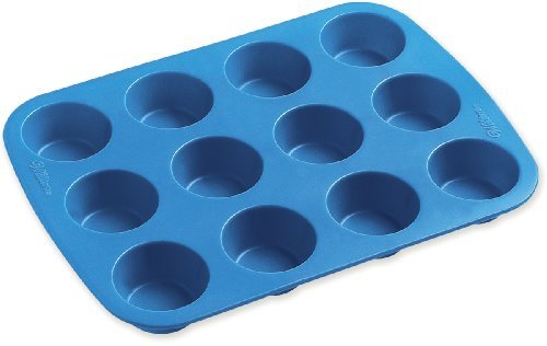 WILTON-Silicone Baking Accessories. Silicone is the Wonder Kitchen Tool: it can be used in the oven (up to 500F/260C); toaster over; microwave; refrigerator and freezer and it is virtually unbreakable. These silicone utensils are the perfect tool cold foods: Jell-O; ice sculptures; Candies and hot foods: cake; muffins; bread; pies; main and side dishes and so much more! The flexibility makes removing foods much easier than your typical metal pans! Dishwasher safe. Stain and odor resistant. This package contains one 10x7-3/8x7/8in Mini Muffin Pan with twelve cavities. Color: Blue. Imported. Read more...